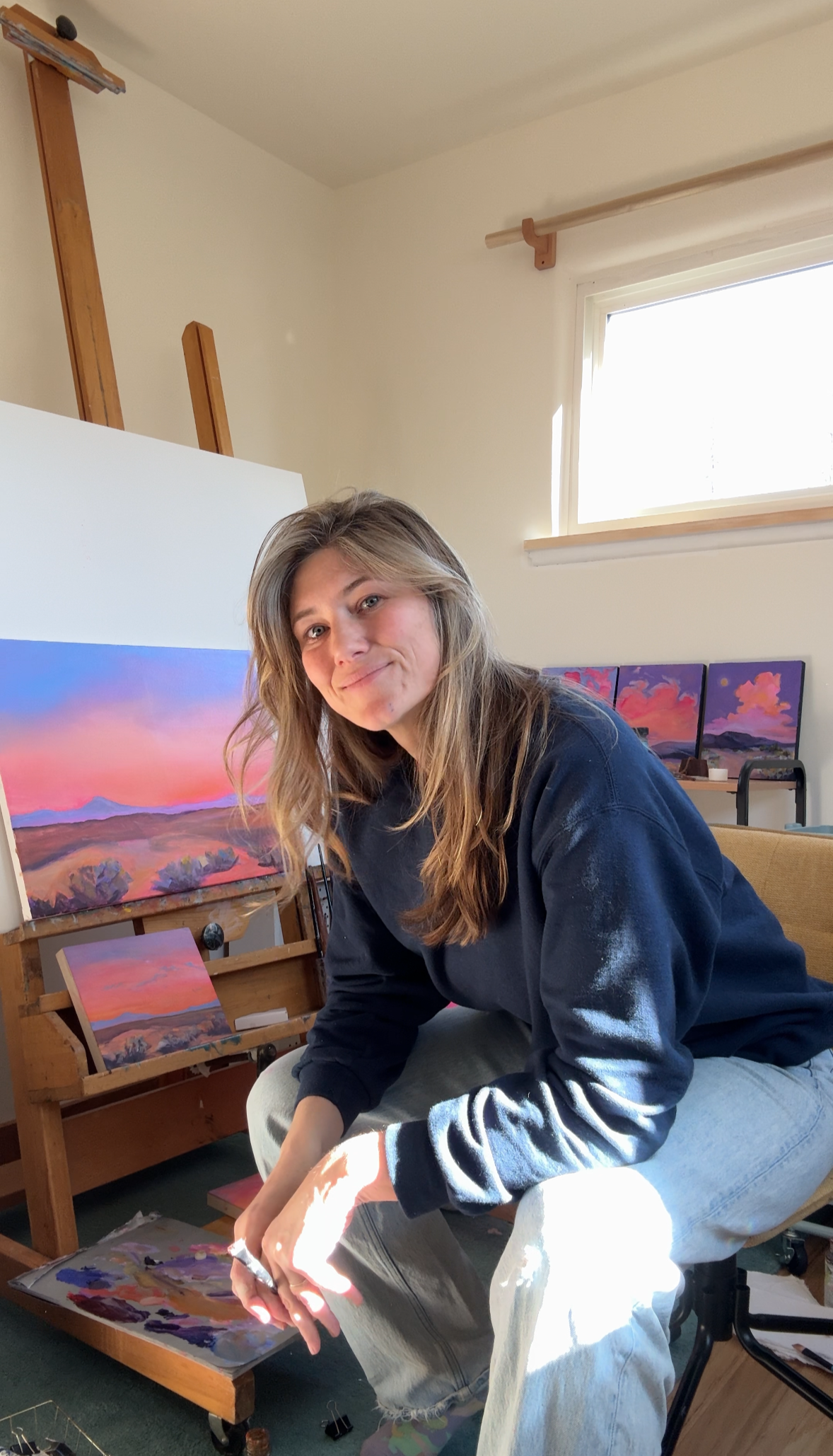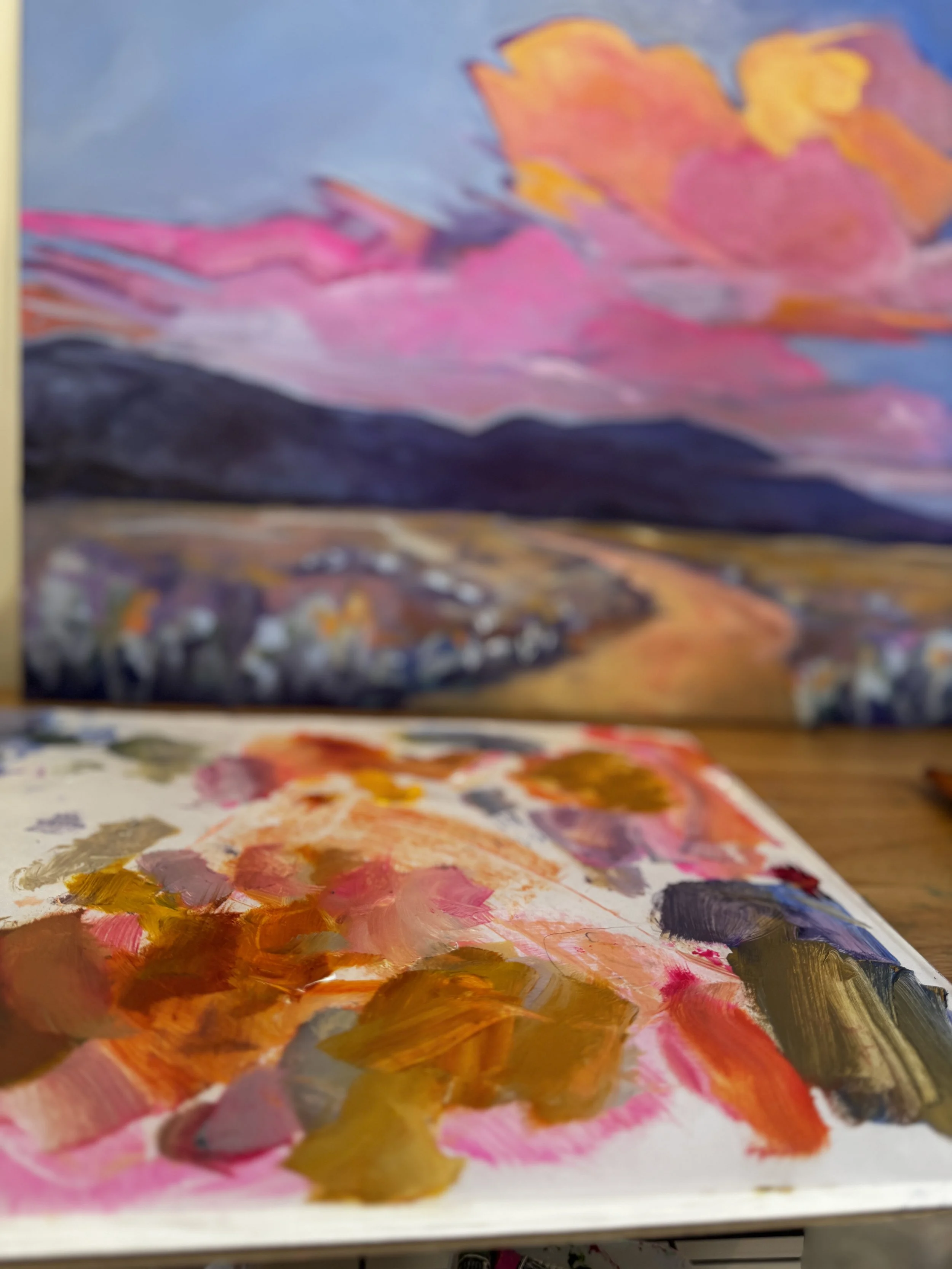 I’m a self-taught oil painter based in Santa Fe, New Mexico. My work is inspired by desert skies, voluminous clouds, and the subtle, breathtaking light of the Southwest. Whether plein air studies or studio compositions, my paintings honor atmosphere and feeling,